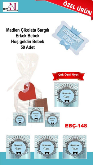 Madlen Çikolata Sargılı Erkek Bebek Hoş Geldin Bebek 50 Adet