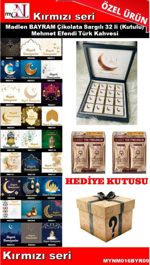 Bayram Çikolatası 16 Lı (Kutulu) Mehmet Efendi Türk Kahvesi Hediyeli Kırmızı Seri