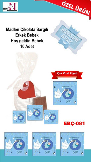Madlen Çikolata Sargılı Erkek Bebek Hoş Geldin Bebek 10 Adet
