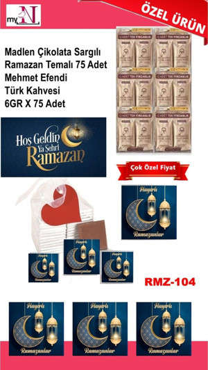 Madlen Çikolata Sargılı Ramazan Temalı 75 Adet - Mehmet Efendi Türk Kahvesi 6Gr X 75 Adet