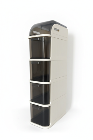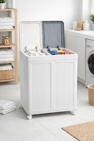 Tekerli Çift Bölmeli Çamaşır Sepeti (Beyaz-Gri)