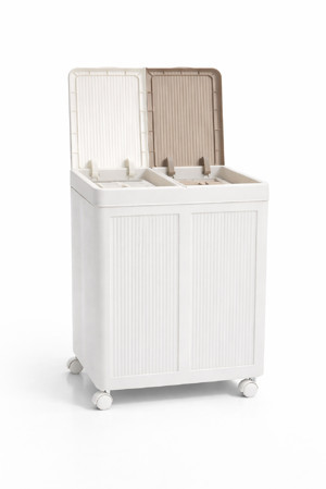 Tekerli Çift Bölmeli Çamaşır Sepeti (Beyaz-Bej)