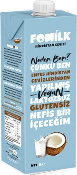 Hindistan Cevizi Sütü 1 L Glutensiz Bitkisel Bazlı Laktozsuz Vegan
