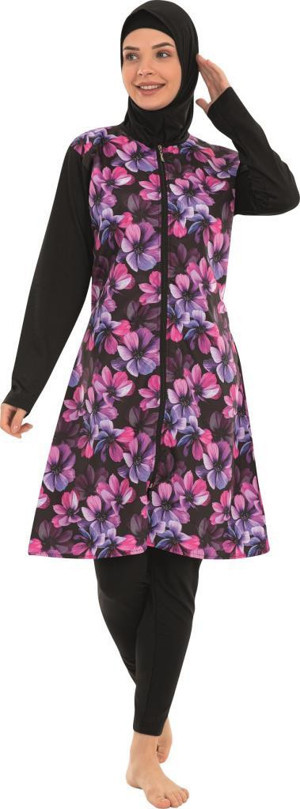 Bayan Desenli Yarı Kapalı Tesettür Mayo 1604-67