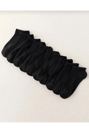 Çorap 10'Lu Düz Basic Siyah Beyaz Patik Çorap