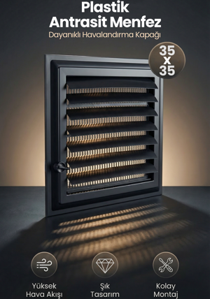 35x35 cm Antrasit Plastik Havalandırma Menfezi, WC / Banyo