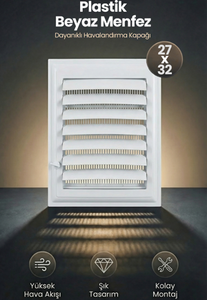 27x32 cm Beyaz Plastik Havalandırma Menfezi, WC / Banyo