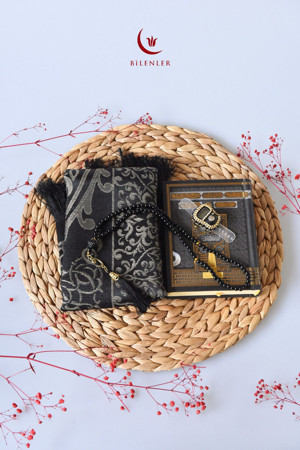 Kabe Desenli Kuranı Kerim-Seccade-Zikirmatik- Tesbih Hac & Umre Hediyelik Seti – Siyah
