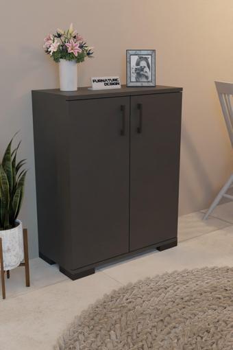 2 Kapaklı Çok Amaçlı Dolap Raflı Erzak Dolabı Mutfak Dolabı - Antrasit - Image 1