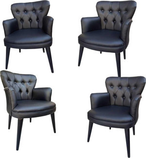 Pera 4 Tekli Siyah Deri Ofis Koltuk Takımı Bekleme Koltuğu Çalışma Masa Sandalyesi Berjer