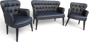 Siyah Deri Siyah Ahşap Ayaklı Ofis Koltuk Takımı Berjer Bekleme Büro Koltuk Takımı