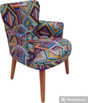 Tekli Etnik Desen Ahşap Ayaklı Ofis Koltuğu Kafe Koltuğu Sandalye Berjer