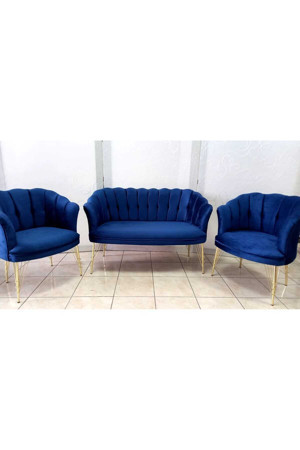 Parliament Saks Mavi Kumaş Metal Ayak Ofis Koltuk Takımı Bekleme Çay Seti Koltuk Takımı