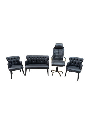 Siyah Deri Siyah Ahşap Ayaklı Ofis Koltuk Takımı Makam Koltuğu - Ofis, Bekleme - 2+1+1+Müdür