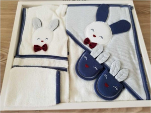 4 Parça %100 Pamuk Bebek Bornoz Takımı