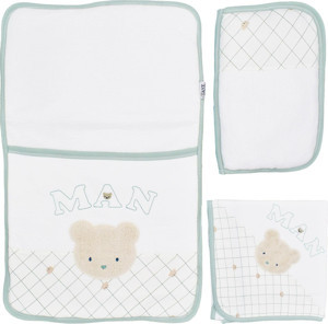 Erkek Bebek Beyaz Nakışlı Havlu Bornoz Seti