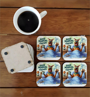 Scooby dooby doo günaydın komik ahşap bardak altlığı