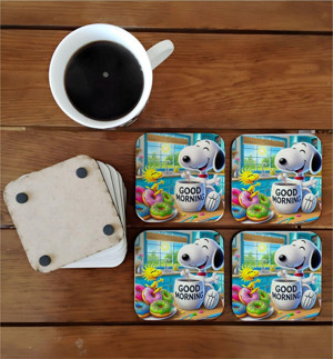 Snoopy günaydın kahvesi çizgi karakter ahşap bardak altlığı