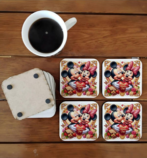 Mickey ve minnie mouse çifti sevgili disney ahşap bardak altlığı