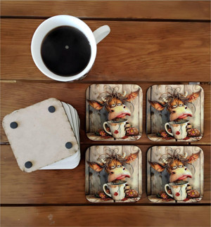 Ruh öküzüm komik hayvan figürlü ahşap bardak altlığı