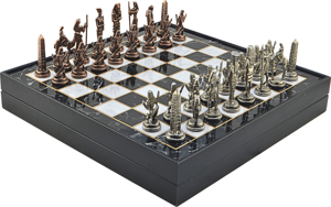 Metal MISIR Satranç Takımı Antik ve Mermer Desenli MDF Sandıklı Satranç Tahtası (36X36X6 cm.)