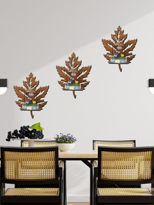 3'Lü Ahşap Duvar Süsü Rafı Yaprak Mumluk Duvar Dekoru Aplik Tablo Obje