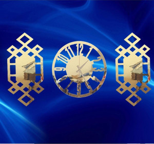 Özel Tasarım Üçlü Set Duvar Saati Ayna Pleksi Gold Köşeli Lar