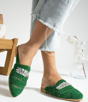 Kadın Önü Kapalı Nakış Taşlı Örme Terlik TS1161