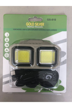 Şarjlı Sensörlü Ledli Kafa Lambası Cob/18650 Pil Gold Silver