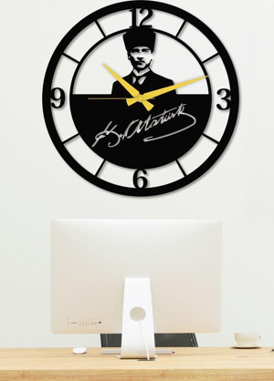 Gowpenart Dizayn Atatürk Portreli Imzalı Siyah Metal Duvar Saati - Ev & Ofis Saati - Hediye Saat 50 x 50 Cm