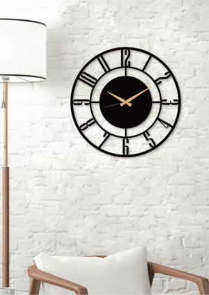 Gowpenart Dizayn Çarklı Roma Rakamlı Metal Siyah Duvar Saati 1,5 Mm Kalınlık 100x100 Cm