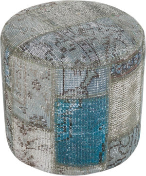 Koyu Gri Turkuvaz Rengi El Dokuma Patchwork Puf