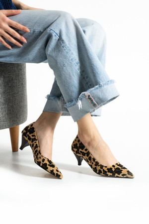 Leopar Desenli Kısa Topuklu Ayakkabı Kadın Sivri Burun Rahat Günlük Şık Ofis Ayakkabısı