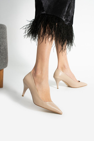 Şık Bej Vegan Deri Topuklu Ayakkabı | Günlük Kombin, Davet, Ofis, Sivri Burun, Genç Kadın
