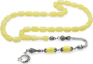 Arnavut Zincir Kararmaz Metal Püsküllü Kapsül Kesim Sarı-Beyaz Beyrut Kehribar Tesbih