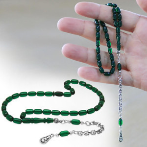 Kararmaz Metal Arnavut Zincir Püsküllü Kapsül Kesim Yeşil Bilek Boy Ateş Kehribar Tesbih