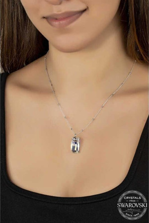 Swarovski Crystal Taşlı Top Zincir Baget Kadın Gümüş Kolye