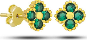 Gümüş Gold Yonca Çivili Yeşil Taşlı Çocuk Küpe