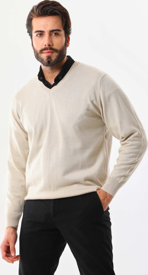 Erkek V Yaka Yün Kazak 5000 Bej