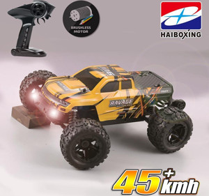Haiboxing HAIBOXING RC 1/16 Ravage 45+ KM/H RC Araba RTR Elektrikli 4WD Brushless Offroad Truck (Sarı)+1100mAh 7.4V2S Lipo Batarya