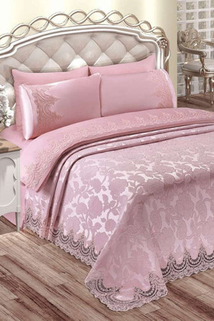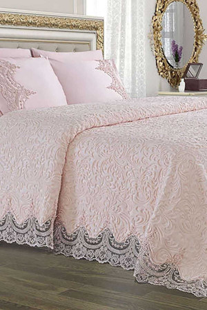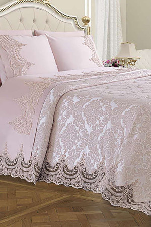 Fransız Dantelli Çift Kişilik Pike Takımı İstanbul Pudra