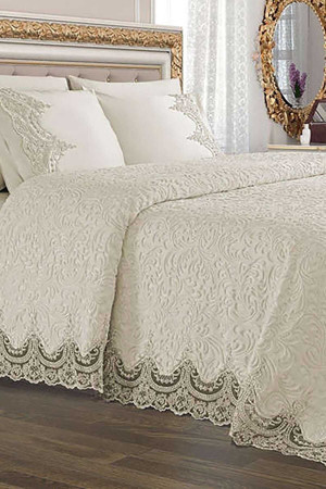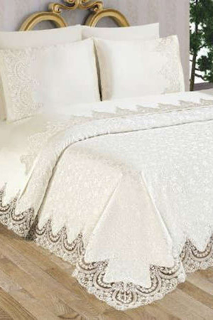 Dantelli Çift Kişilik Pike Takımı Sultan Krem