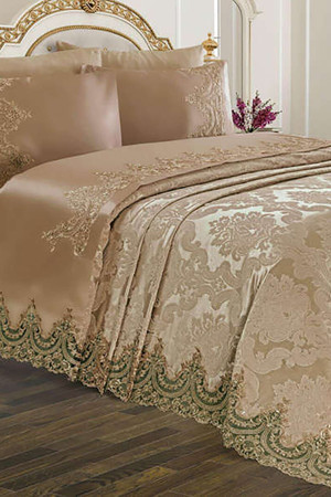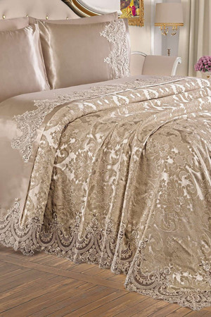 Fransız Dantelli Çift Kişilik Pike Takımı Sahra Kapuçino