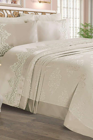 Fransız Dantelli Çift Kişilik Pike Takımı Sahra Krem