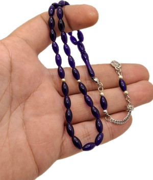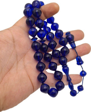 Sığırcık Kesim Büyük Boy Lacivert Toz Kehribar Tesbih