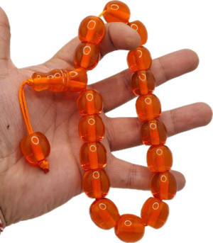 Büyük Boy Özel Model Somon Turuncu Renk Efe Maskot Toz Kehribar Tesbih