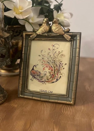 Kuş detaylı çerçeve , haki renk kuşlu çerçeve 25cm