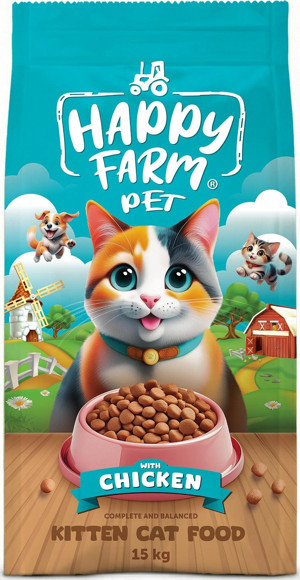 Happy Farm Yavru Kedi Maması Tavuk Etli Kitten 15 KG