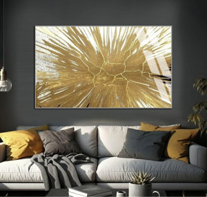 Gold Soyut Desenli Şekil Çerçeveli Temperli Cam Tablo Tekli Yatay
