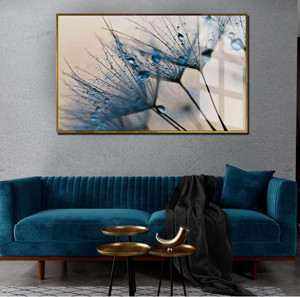 Mavi Çiçekli Model 01 Çerçeveli Temperli Cam Tablo Tekli Yatay